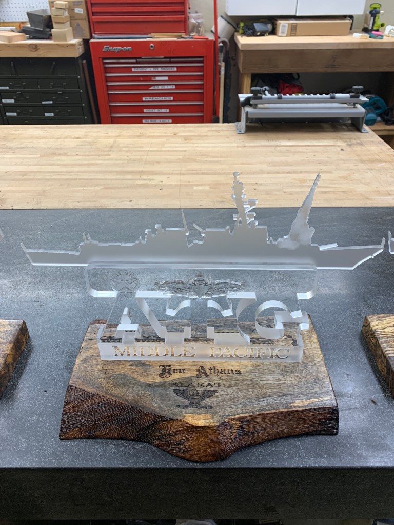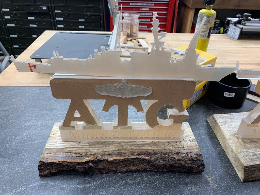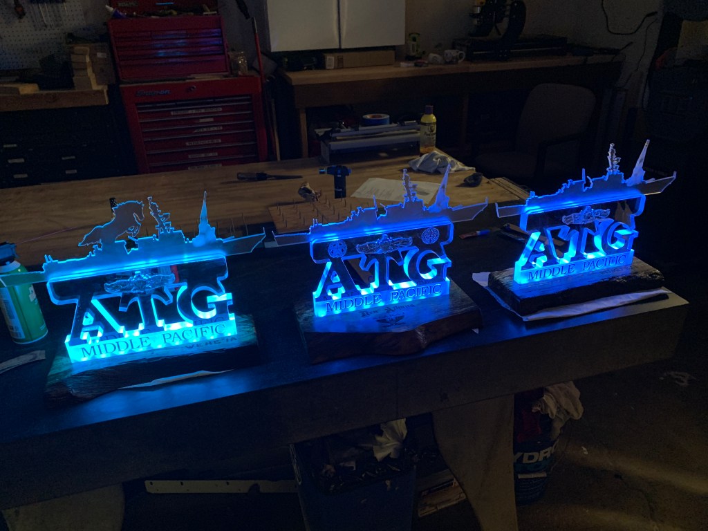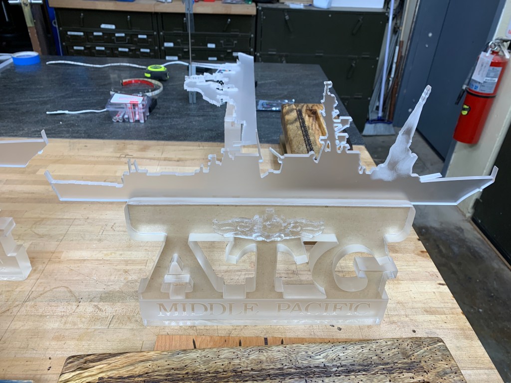 Made Command Centerpieces for Navy Ball. These were fun and the first time I carved Plexi