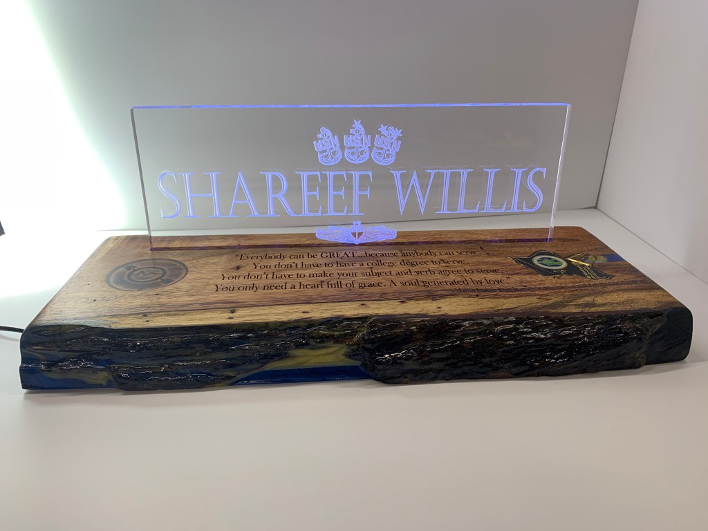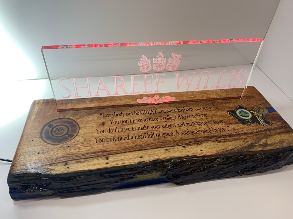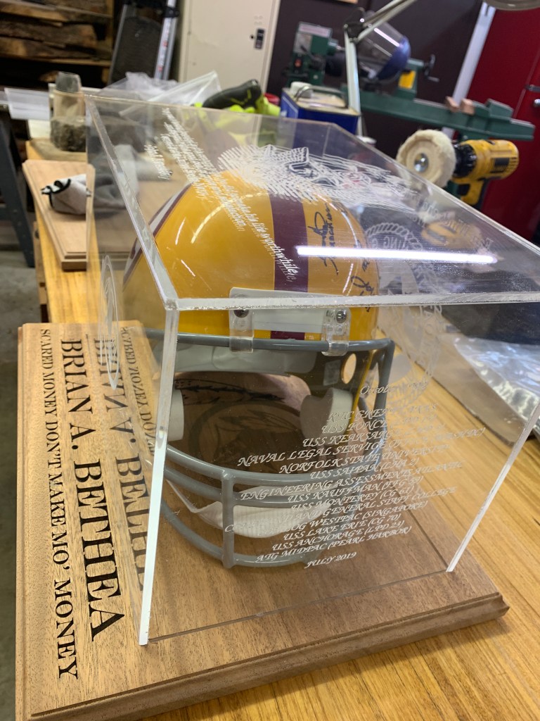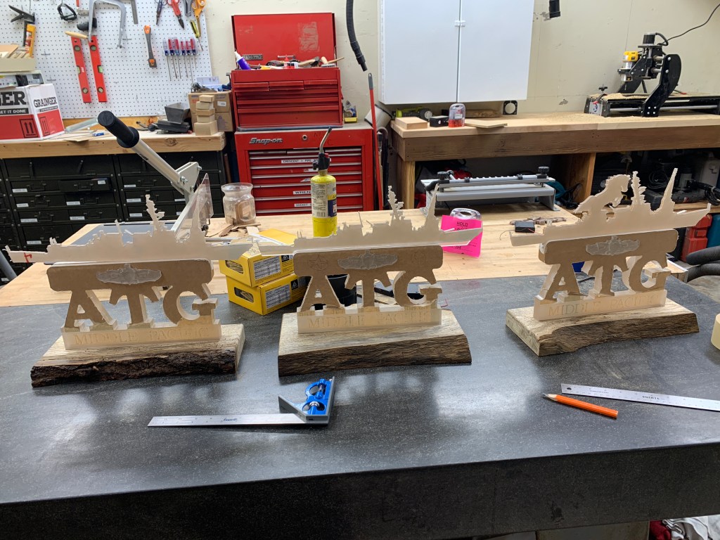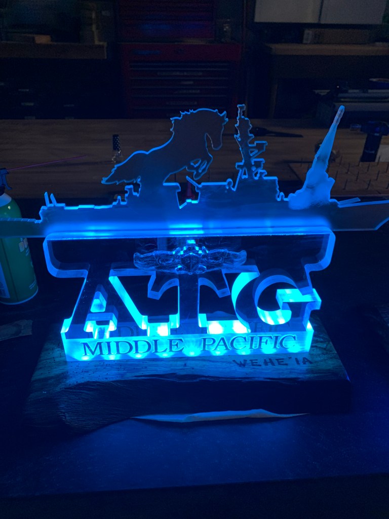 Made Command Centerpieces for Navy Ball. These were fun and the first time I carved Plexi