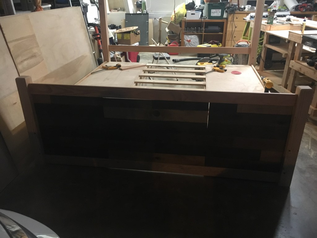 Bed made from mostly reclaimed lumber