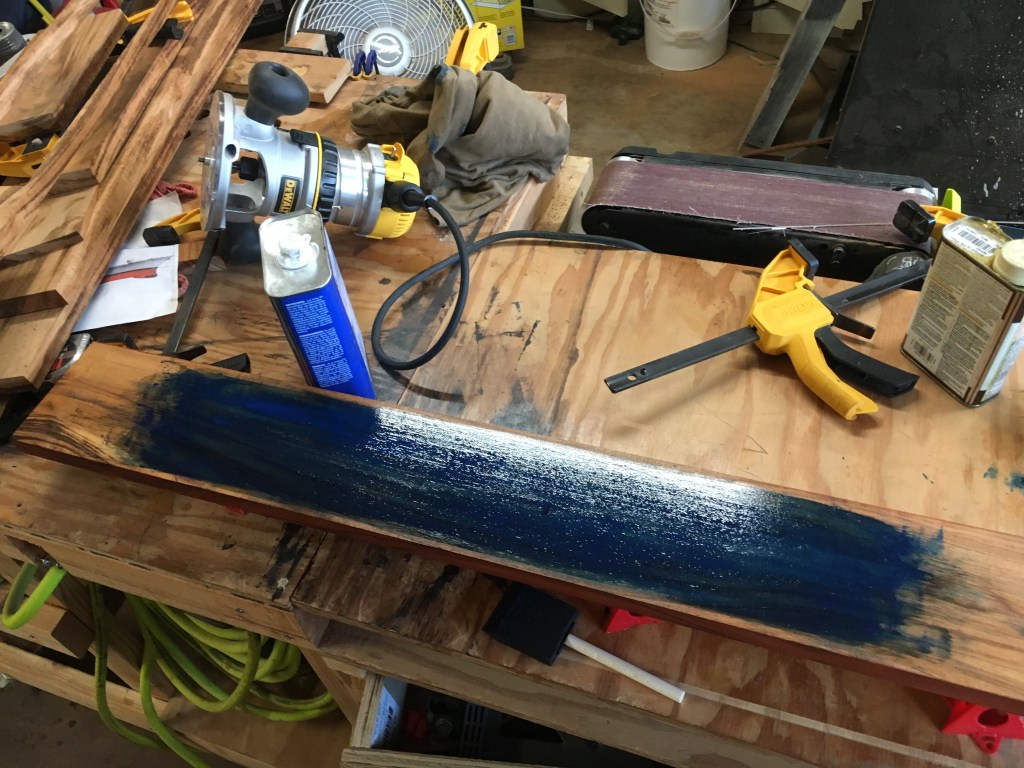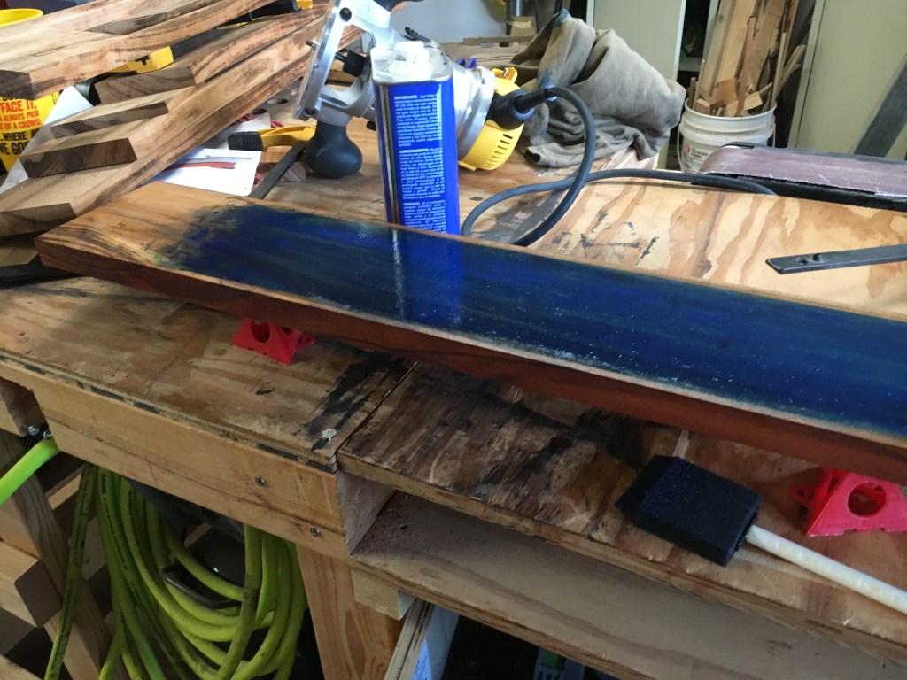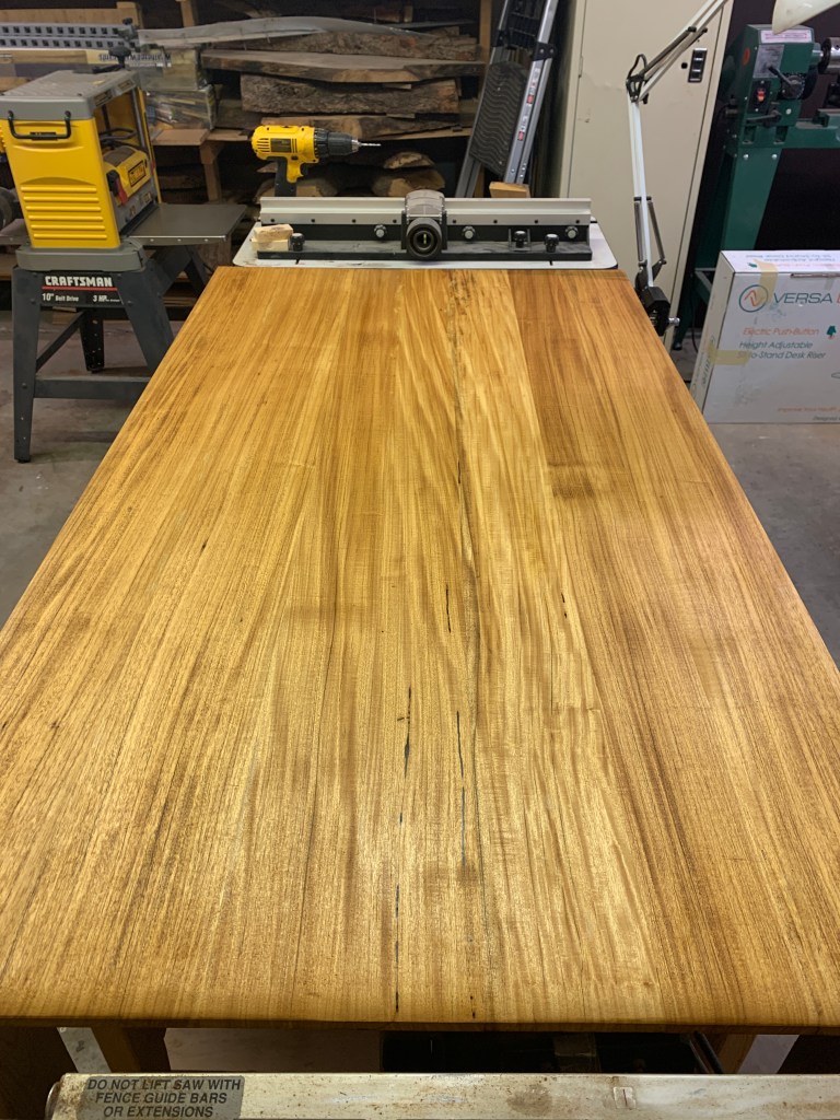 Needed a new Workbench top so I used this reclaimed Lychee. The Grey board is the before shot